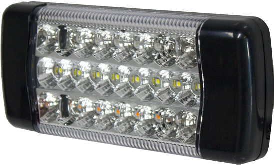 The CRL220LED series is a multifunction rear combination lamp featuring advanced LED optical free-form reflector technology to achieve a highly styled robust lamp that can be customized to match modern vehicle and trailer designs. The CRL220LED series is made for heavy-duty use and includes a high-impact polycarbonate lens and strong ABS Base. ADR-compliant for stop, rear position, direction indicator and reverse in a single compact package, the CRL220 series uses SmartClip end covers which offer upgradable options. This feature allows for custom options including colored end clips, integration clips that combine two or three lamps as one, and end reflectors for a fully compliant rear lighting solution. Suited to OEM and commercial applications.