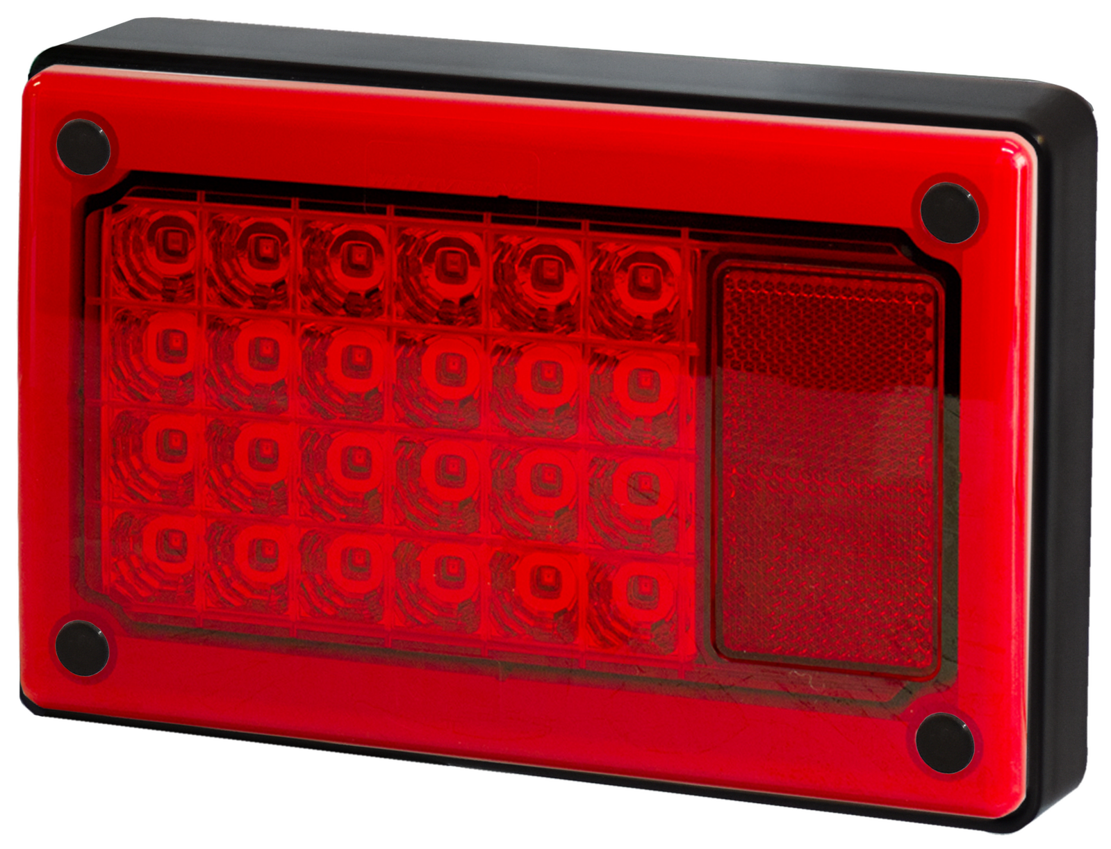The all-new CRL605LED Series Jumbo LED lamps deliver quality, performance, and durability for heavy-duty applications. Featuring high visibility optics and modular design, the CRL605LED series can be customized to suit stop / rear position/direction indicator and reverse functions as required. Each module also incorporates an integrated reflector providing a complete compliant rear signalling solution. Constructed with ultra-strong polycarbonate lenses with enhanced chemical protection, high-reliability optics, and toughened ABS base the CRL605LED series is designed to handle the toughest of conditions under constant operation. Suited to OEM and commercial vehicle applications