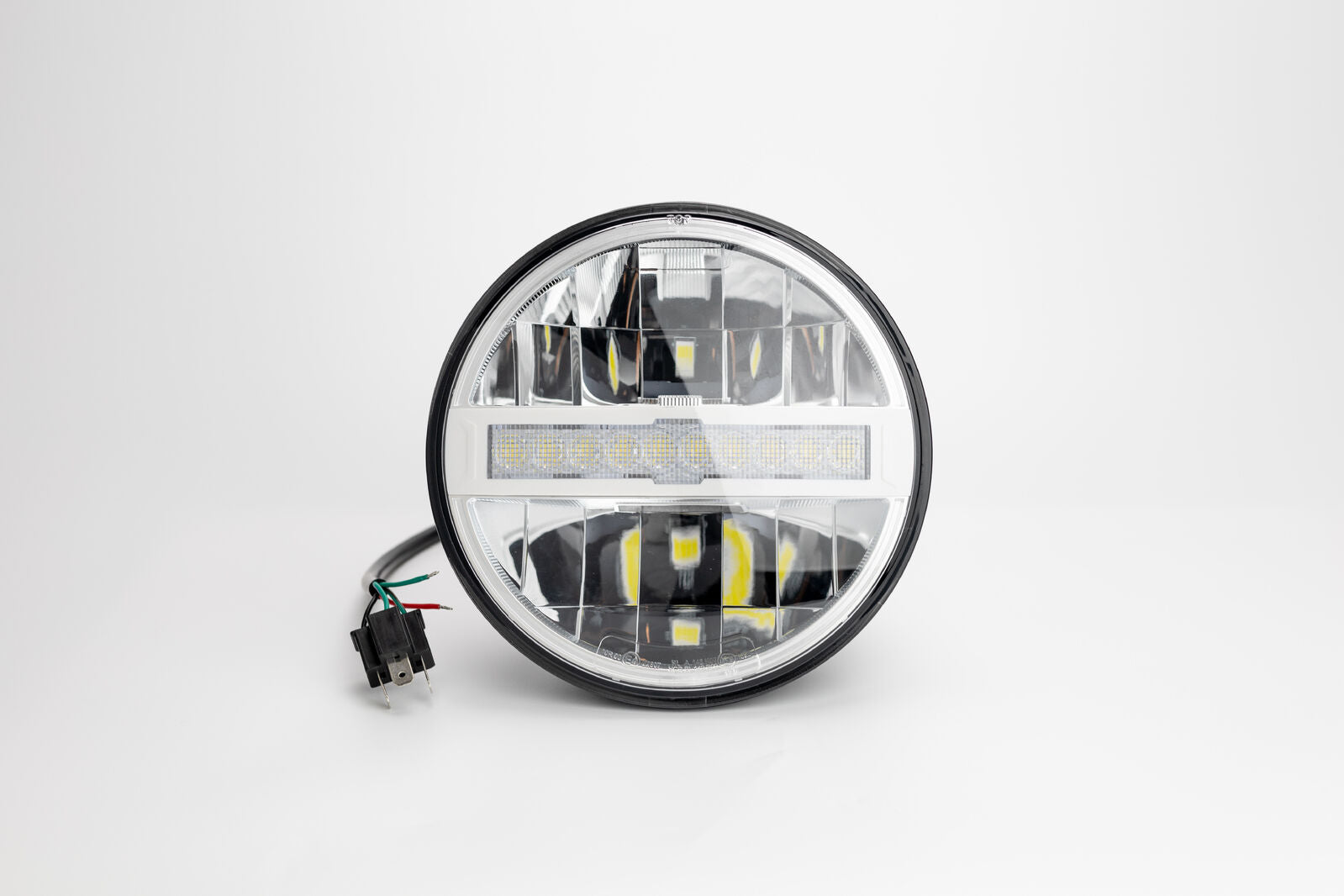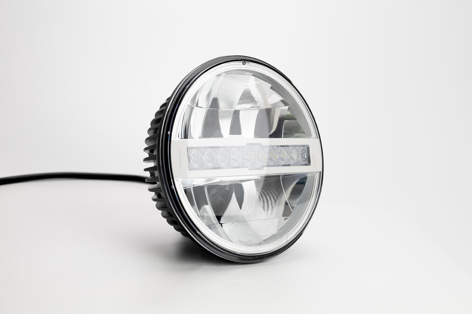 The Rayzer 7 headlight is an ECE/ADR-compliant upgrade for conventional lighting featuring a high beam, low beam, a park-integrated daytime running light, and a right or left-hand sequential LED indicator. Designed with free-form reflector optic & crossbar-style multifunction LEDs, this headlight brings a new, enhanced style to common 7 headlight applications. With a virtually indestructible polycarbonate lens, 9-33V varivolt, and low-profile fitting dimensions, this light is suited to both heavy and light-duty vehicles.